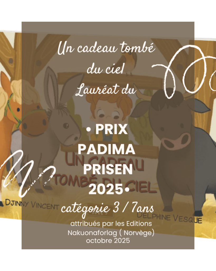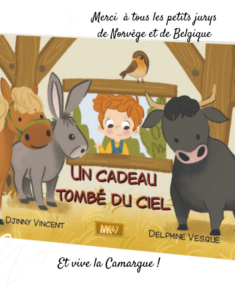 gratitude aux @editions_nakuonaforlag et aux petits jury de 3/7 ans pour ce prix décernés par des enfants de Norvège et de Belgique pour ce livre que nous avons créé pour les @editions.mk67 avec les dessins de Delphine Vesque @delphine_colledesstickers et le texte de Djinny Vincent (@la_bottle_a_djinny ).